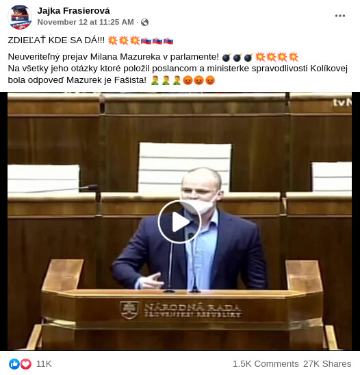 Len máloktorý politik má takú sledovanosť ako niektoré videá Milana Mazúreka. Video z novembra 2021 dosiahlo rekord zdieľanosti a sledovanosti.
