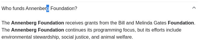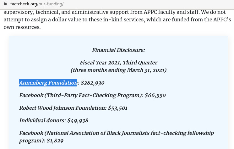 Najväčším sponzorom Factcheck.org je nadácia Annenberg, tú ako inak najviac financuje nadácia Billa a Mellindy Gatesových.