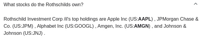 Rothschildovci napriamo majú najväčšie akcie v Google a Johnson & Johnson.