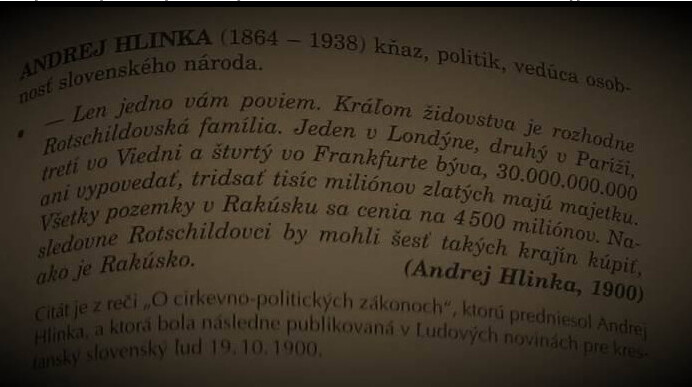 Andrej Hlinka sa v roku 1900 vyjadril o Rothschildovcoch následovne:
