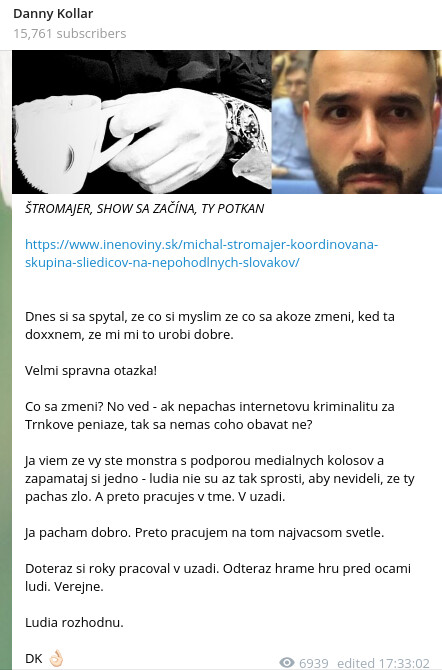 Danny Kollár na svojom Telegram účte upozornil na poprednú osobu škodiacu ľuďom v internetovom priestore. Ide o Michala Štromajera.