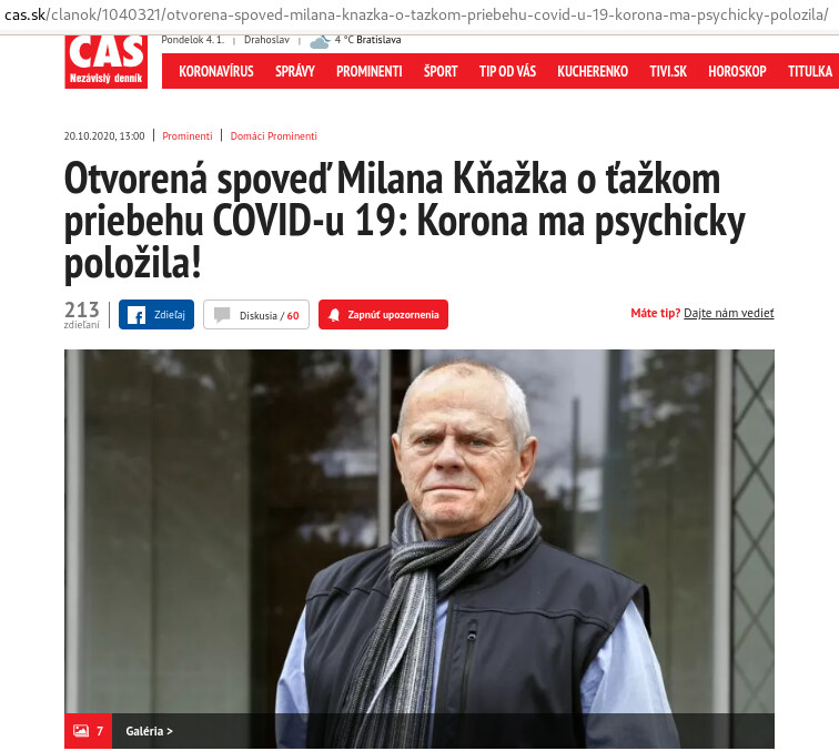 Nie je to tak dávno, čo Kňažko využili na strašenie o COVIDe. Na to, že mal byť ešte v októbri psychicky položený, ožil pomerne rýchlo.