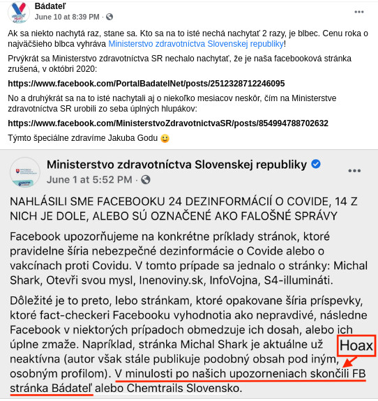 MZ SR podľa portálu šírilo dezinformácie o zrušení FB stránky badateľ.