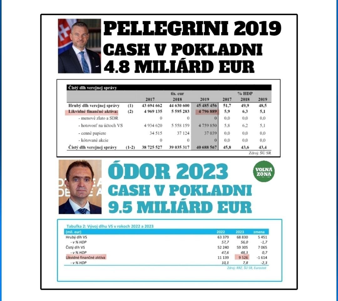 Pointa je však to, že z tých požičaných peňazí nechal Ódor v kase 9.526 miliardy eur a vláda SMER-SD, HLAS-SD a SNS tak nastupovala s plnou kasou v sume takmer 10 miliárd eur.