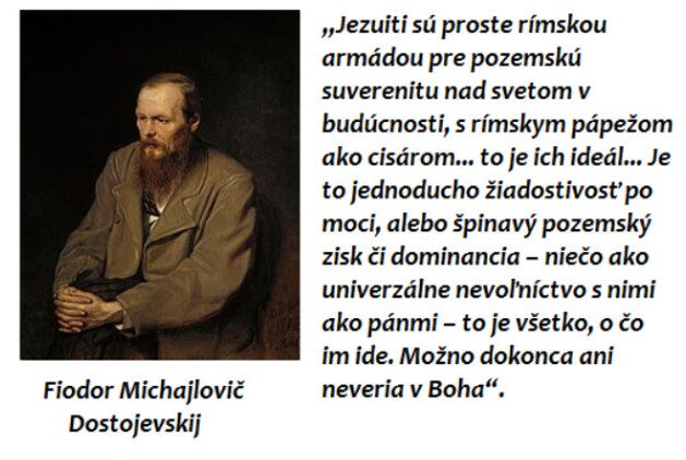 Tu si treba položiť otázky. Koho záujmy hlásali jezuiti a hlásajú? Zdá sa, že slovenské to nie sú. Sú extrémne poslušnými lokajmi Vatikánu, toho Vatikánu, ktorý je prehnitý mamonom, podvodmi, ukrytými knihami a pokladom minulých civilizácií. Ide o sluhov cirkvi, ktorí pre Vatikán urobia všetko, vojenská disciplinovanosť nemajúca obdobu vo svete. Boli vzdelaní a profesionáli v manipulácii a ovládaní más.