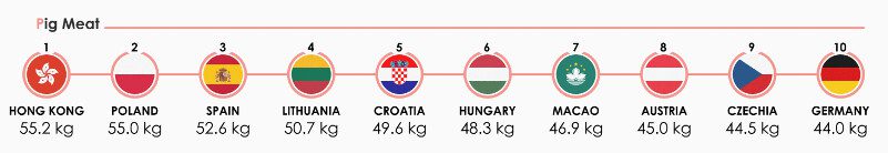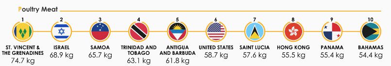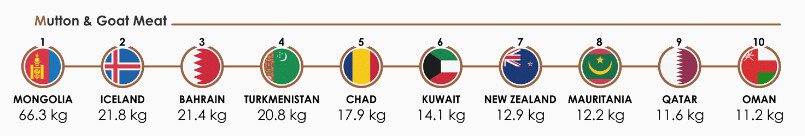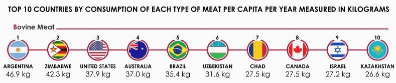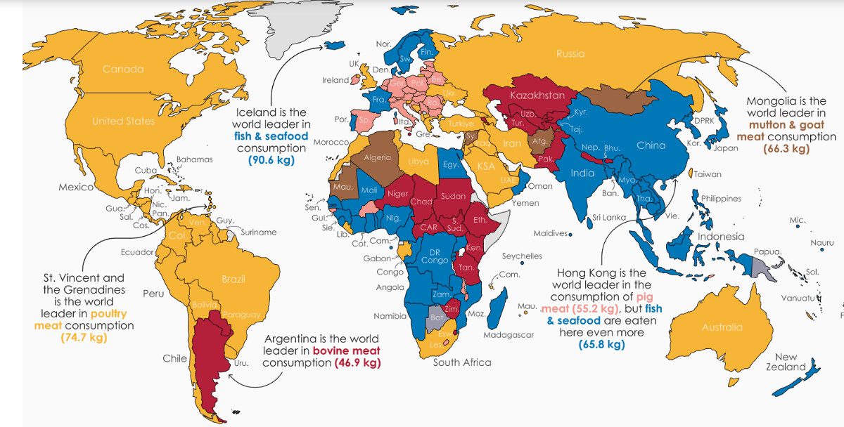 graf spotreby mäsa na obyvateľa podľa krajín z údajov FAO za rok 2020.