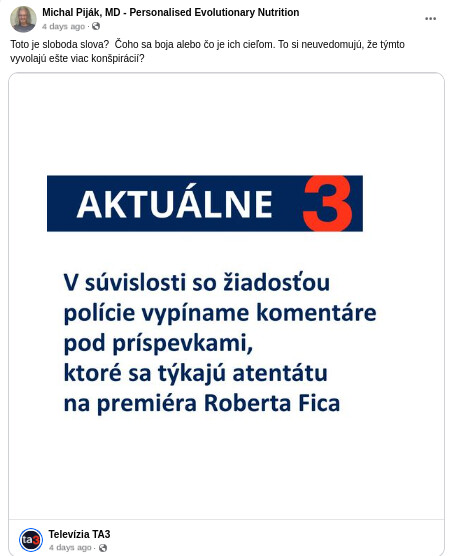 Diskusie cenzurujú a vypínajú hlavne s cieľom zabrániť šíreniu nechcených informácií. Vlastného uvažovania, ktoré podkopáva množstvo podivnosti v prípade atentátu na Fica.
