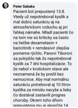 Video bolo natočené 9.8.2021, kedy mal byť ešte Tibor na kyslíku a bez kyslíka podľa jeho slov nemohol dýchať. O 4 dni už mal byť prepustený…ultra rýchle vyliečenie a rýchly prechod z kyslíka…Možno bude zápis do Guinesovej knihy rekordov.