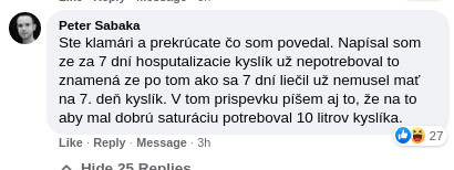 Ako vidieť foto aj video, Tibor je na kyslíku. Pričom MUDr. Sabaka, ktorý pracuje v nemocnici, kde bol Tibor hospitalizovaný klame, že za celý čas kyslík nebol potrebný.
