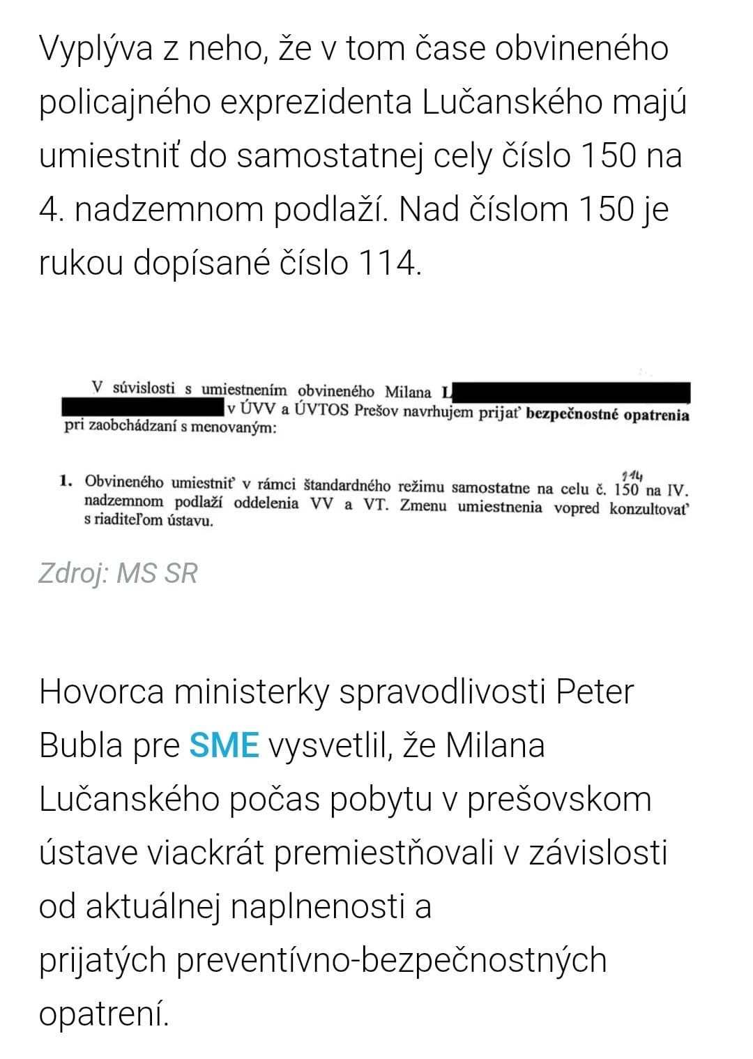 Na internete sa objavila správa od osoby z ministerstva vnútra a policajného zboru, že Černáka podľa nej previezli do Prešova 8.12.2020, deň pred incidentom s Lučanským. Černák vypovedal v Prešove 15.12.2020, nemohli ho však prevážať v ten deň a eskorty sa majú robiť len v utorky.