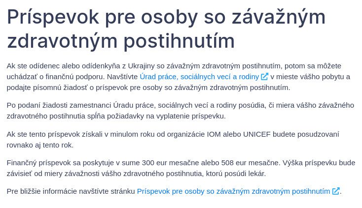 Písali nám viacerí občania, kde napríklad jeden berie vyše 10 liekov, inak má ťažké depresie, úzkosti. Nie je schopný pracovať a je odkázaný na pomoc rodiny. Invalidný dôchodok mu bol priznaný po roku 100 EUR. Ďalši príbuzný pána, ktorý nám napísal podal žiadosť o invalidný dôchodok, na úrade od neho žiadali toľko papierov a nezmyslov, že to nestihol a zomrel na následky ochorenia. Robia takéto komplikácie pri ziskávani podpory aj Ukrajincom?