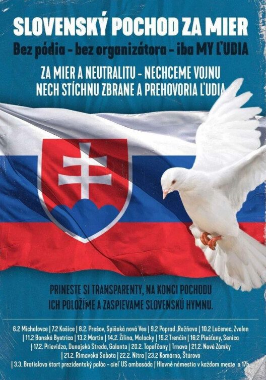 Protesty budú celý február a marec. V Bratislave 3.3.2023 pred prezidentským palácom a pôjde sa k americkej ambasáde. Uvidíme, ktorí politici a verejne osoby sa pridajú a ktoré naopak, chcú vojnu a vyvraždovanie ľudí.