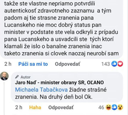 V jednom z komentárov Naď tvrdí, že zranenia Lučanského neboli „veľké“