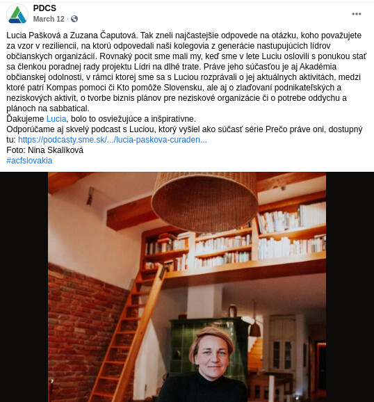 Lucia Pašková je progresivistka, dobrá kamarátka Zuzany Čaputovej, Martina Poliačika, bojovníčka za prjímanie imigrantov, riaditeľka spoločnosti Curaden.