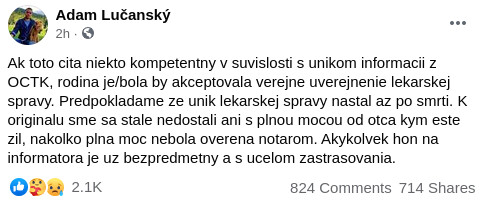Nemocnica v Ružomberku naťahuje poskytnutie lekárskej správy Lučanskeho rodine