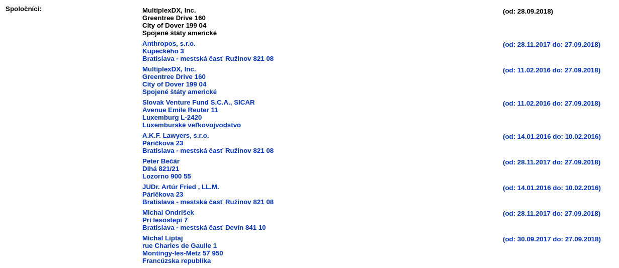 Firma MultiplexDX v obchodnom registri.