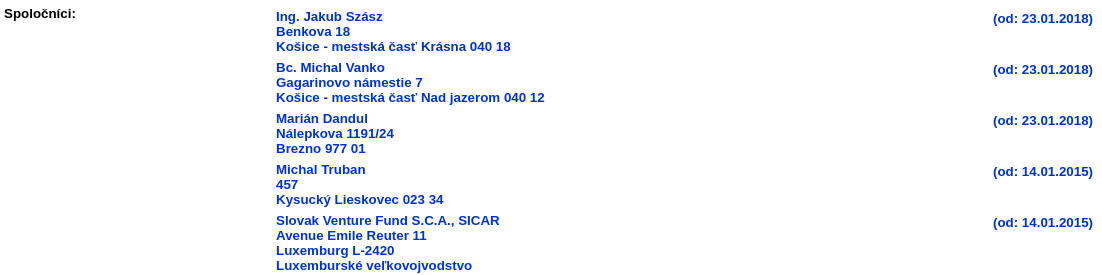 Zo spoločníkov je zaujímavá firma Slovak Venture fund so sídlom v Luxembursku, čo je obľúbený daňový raj pre firmy, ktoré majú záujem vyhnúť sa plateniu dani. Luxembursko je defakto parazitujúci štát a využíva podvodníkov najmä z EÚ, ktorí okradajú svoje štáty tým, že si dajú sídlo v tomto daňovom raji. Kde bolo chránene aj bankové tajomstvo. Niektore veci sa trošku zmenili po škandále s názvom Luxleaks, kedy sa odkryla schéma podvodov s DPH.