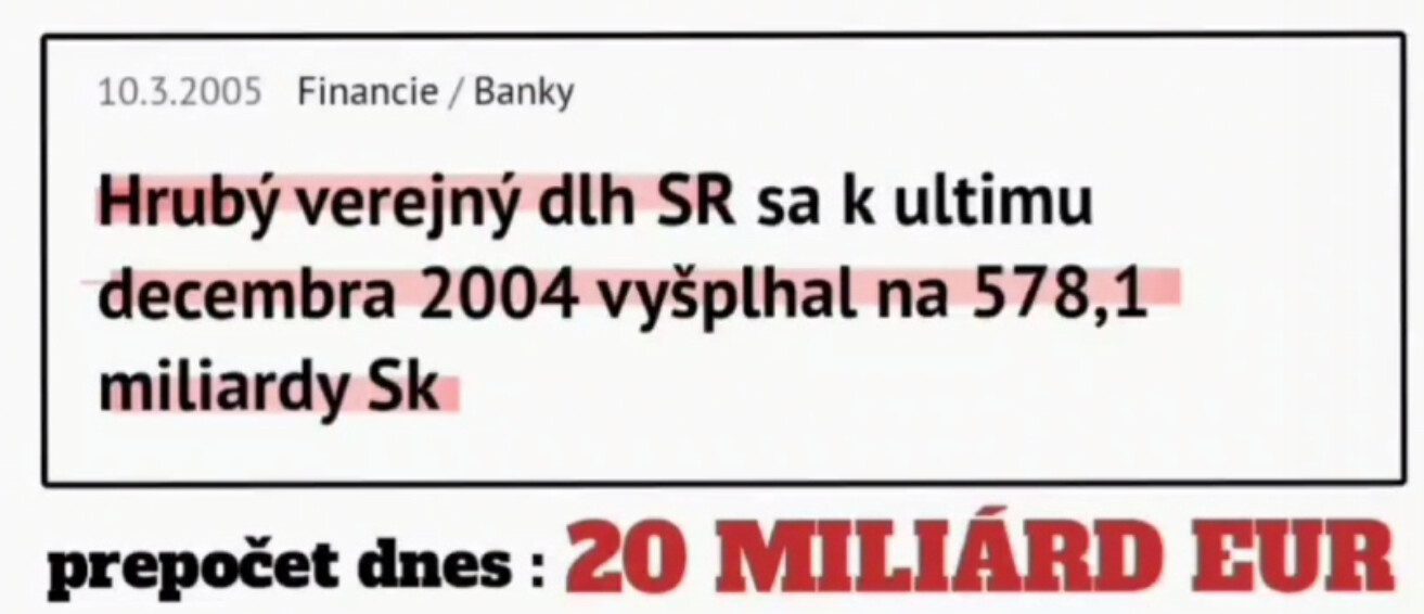 V roku 2004 sme mali hrubý štátny dlh v prepočte približne 20 miliárd eur.