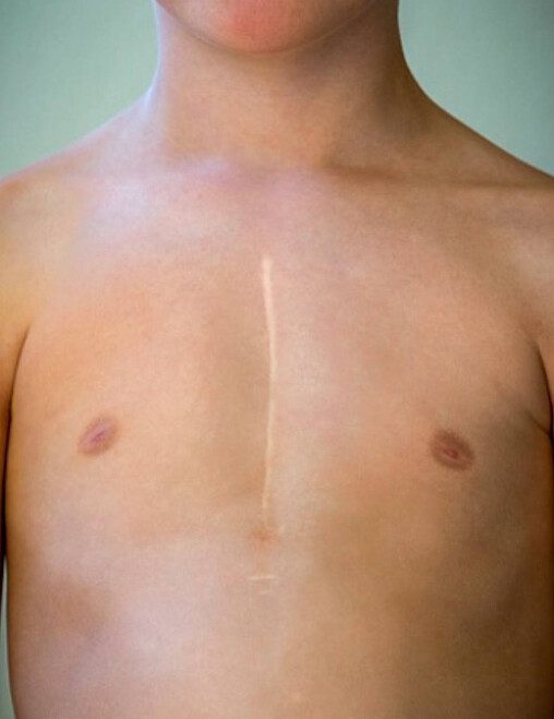 Veľkosť jazvy po operácii srdca s bypassom a ECMO závisí od chirurgického postupu, ale tradičná mediánna sternotómia (operácia na otvorenom srdci) má za následok veľkú jazvu s dĺžkou 20 až 28 cm uprostred hrudníka. Pokročilejšie, minimálne invazívne techniky môžu zanechať menšie jazvy, napríklad 3 až 5 palcov (7,5 až 13 cm) rez na boku hrudníka alebo ešte menšie rezy pri vysoko špecializovaných zákrokoch, hoci ECMO sa často používa v kombinácii s invazívnejšími formami operácie alebo u pacientov, ktorí kriticky potrebujú podporu, čo môže ovplyvniť chirurgický postup.