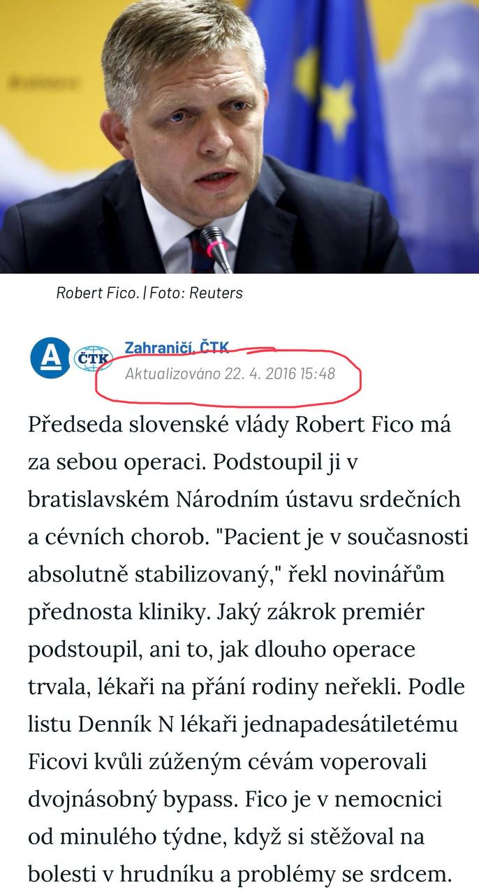 Fico mal byť údajne operovaný v roku 2016 na srdce (bypass) a mal mať mimotelový obeh.