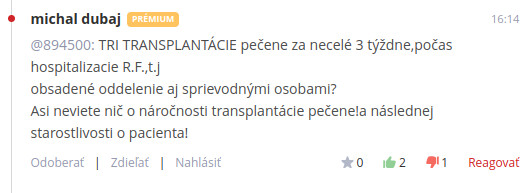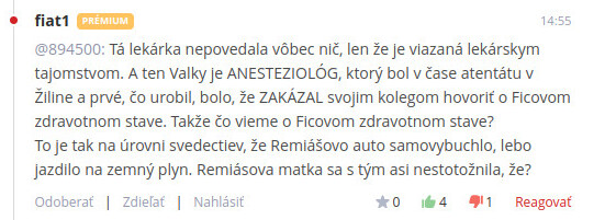 Slovensko je zázračná krajina. Internetom sa šíria také bludy, že lekár ARO operuje strelné poranenia. To aj Afričania vedia, že to operuje chirurg, lekár ARO tak maximálne uspáva. Prečo sa k stavu Fica vyjadruje lekár ARO? Ktorý v čase atentátu bol v ŽIline? Prečo nie chirurg, ktorý ho operoval? Lebo taký neexistuje? 🙂 Ako je možné, že práve 3 náročné transplantácie pečene sa dejú počas Ficovej hospitalizácie?