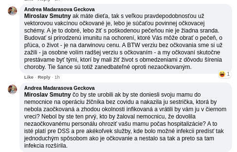 Túto jedna komentujúca trošku nechápe súvislosti. Práve očkované sestry a lekári infikovali množstvo pacientov, ktorí prišli do nemocnice negatívni a odchádzali pozitívni alebo priamo zomreli. Očkovaní sú bezpríznakovi nosiči a o to sú nebezpečnejši. Vakcíny nie sú účinné na nové mutácie, alebo len minimálne. Už je dokladovaných viacero prípadov opakovanej nákazy očkovaných.