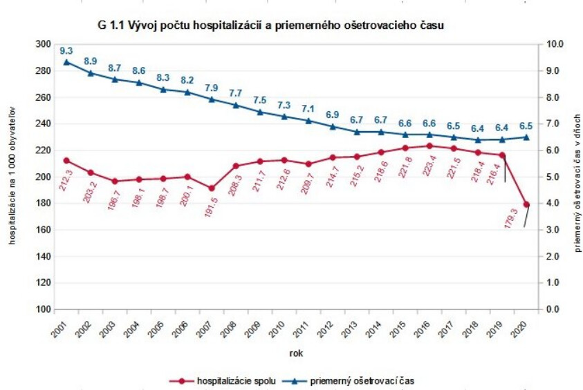 Z grafu vyplýva, že 37 pacientom na 1000 bola odopretá zdravotná starostlivosť formou hospitalizácie. To je pri 5,5 milióna obyvateľov Slovenska 203 000 hospitalizácií. Obete, ktoré sa nedostali do nemocnice, zo strachu, pre zákaz, odmietnutie…mnohým z nich sa mohol horšiť zdravotný stav a dostali sa do fázy, kedy už liečba nepomohla.