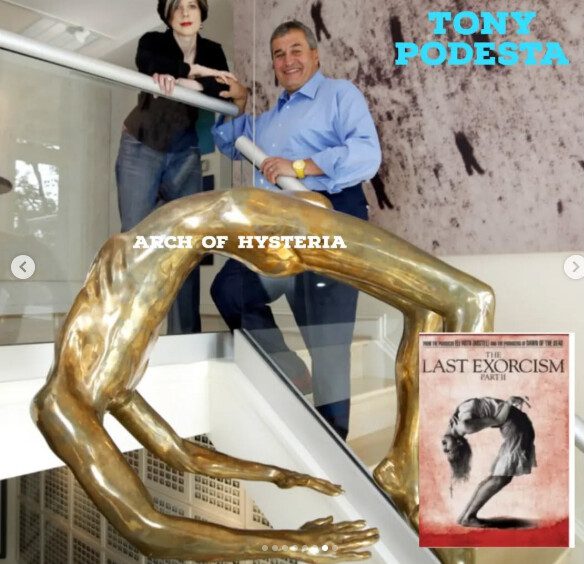 Brat Johna Podestu má vo svojom dome zlatú sochu bez hlavy, ktorá je exorcistickým symbolom. Takí inteligenti, bojovníci proti konšpiráciami a takíto šialenci veriaci na posmrtný život, exorcizmus a rituály? Čo páni novinári a bojovníci proti hoaxom?