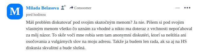 Internetové diskusie ovládajú poslanci SNS, ako táto Milada Belasová z Považskej Bystrice.