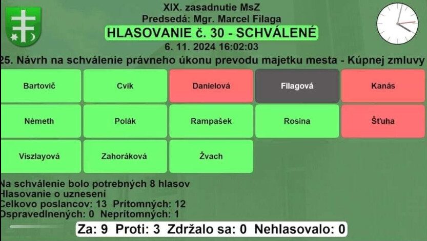 Jediní, ktorí boli proti predaju a budovaniu činskej toxickej baterkárne boli: MUDr. Ján Kanas, Radoslav Šťuha, Mgr. Ing. Alžbeta Danielová.