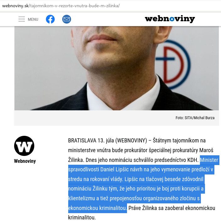 Žilinka bol v roku 2010 vymenovaný za štátneho tajomníka ministerstva vnútra práve ministrom vnútra Danielom Lipšicom. Obaja pôsobili v KDH a ich mládežnickej organizácii KDMS.