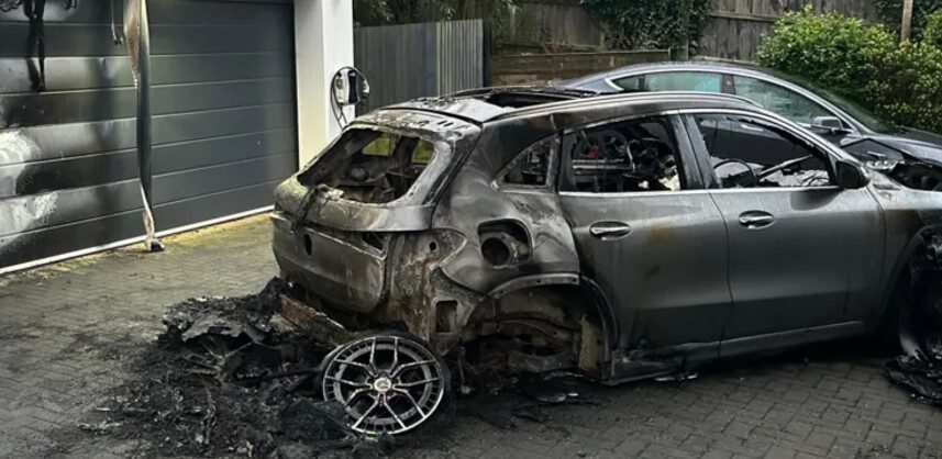 Rodina bola večer doma, keď zrazu počuli rachot a neskôr zistili, že im vybuchol a horí elektrický Mercedes pred domom. Privolaní hasiči povedali, že nechýbalo veľa a mohli vyhorieť.