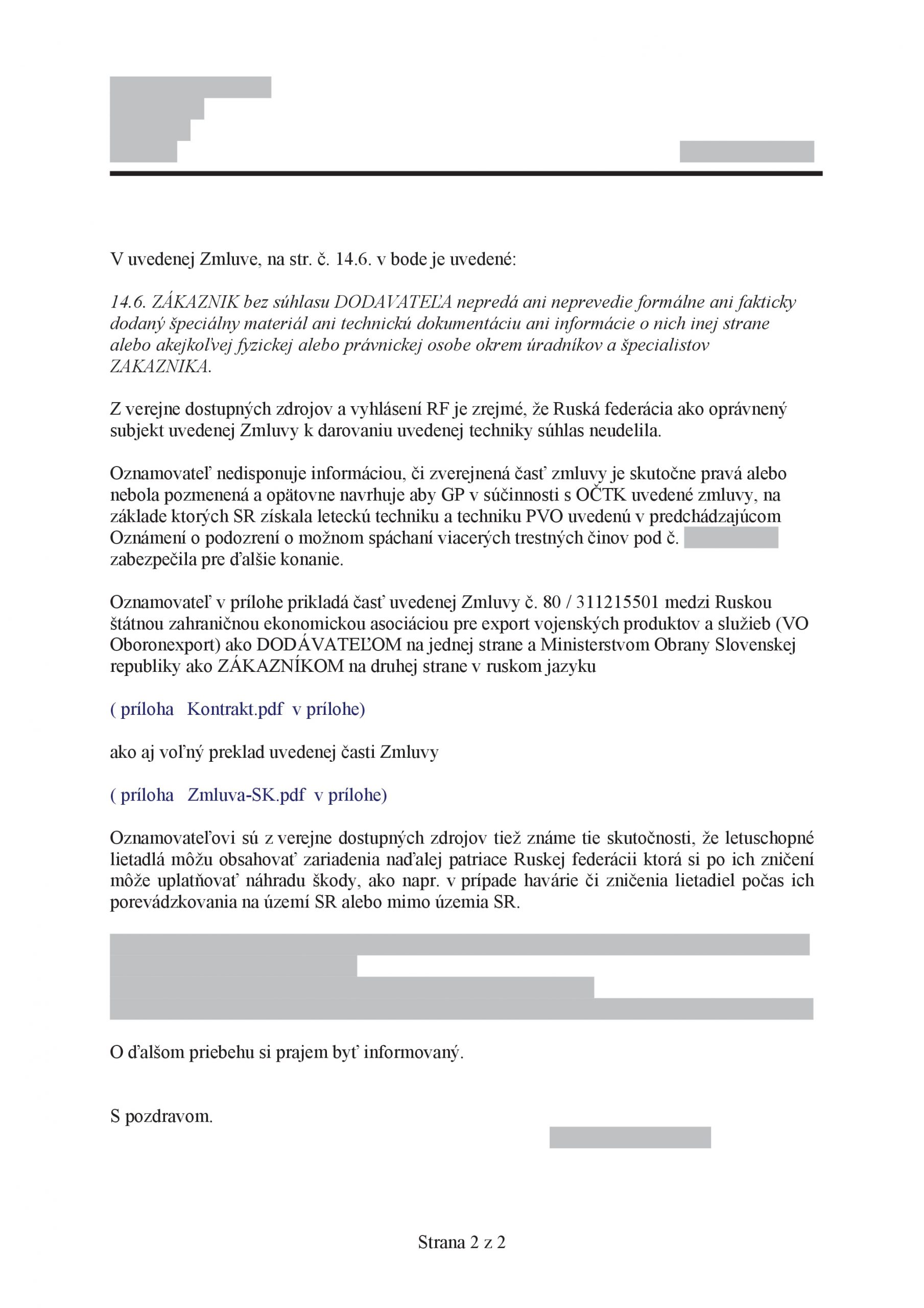 Občan poslal na Generálnu prokurarúru doplnenie trestného oznámenia , medzi inými aj zmluvy s RF tentokrát tú skutočnú nie fiktívnu ktorou máva pán Heredoš .