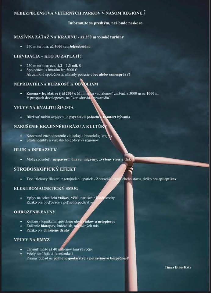 Petícia proti výstavbe veterného parku