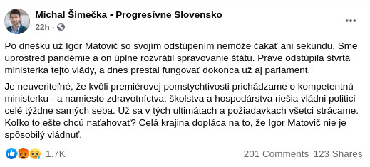 Igor Matovič: Práve som dočítal rozhovor v eNku so Šimečkom, predsedom PS. Okrem toho, že …