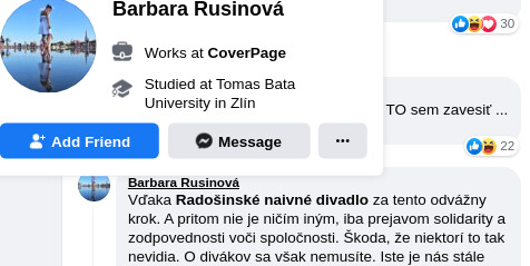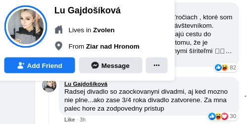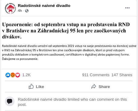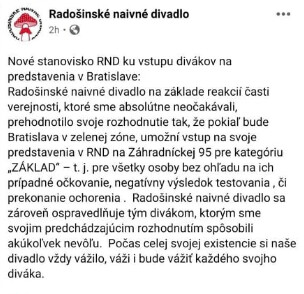 Na facebooku sa objavil statu Radošinského divadla.