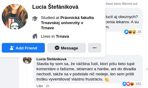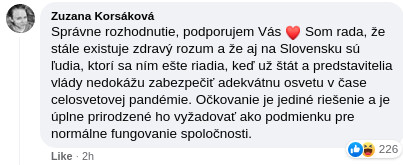 Veľa ľudí v komentároch písalo o podávani trestných oznámeni za diskrimináciu neočkovaných voči očkovaným, ktorí aj napriek očkovaniu sú šíritelia vírusu.