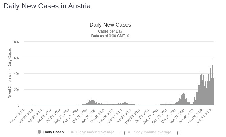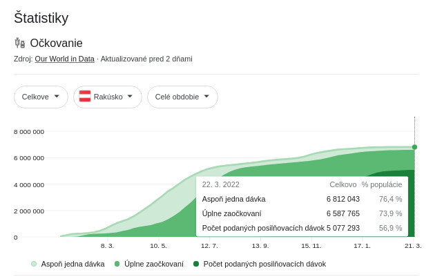 Rakúsko patrí medzi najzaočkovanejšie krajiny na svete treťou dávkou (posilňovacou). Zároveň dosahuje rekordy nových pozítivnych COVID prípadov. Podstatne vyššie čísla ako minulé roky.