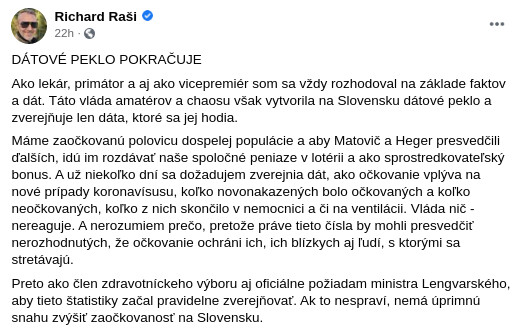 Slovensko podobne ako väčšina štátov úmyselne tají množstva hospitalizovaných očkovaných v nemocniciach. Raši sa tvári, že nechápe…