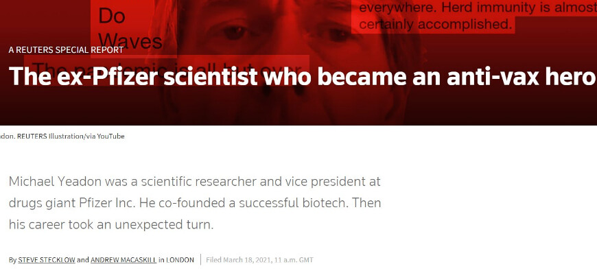 Práve Reuters zohráva veľku úlohu v ochrane záujmov vakcinančného priemyslu, kedy na každého kritika útoči a zosmiešnuje ho. Príkladom je aj bývalý šef Pfizeru, ktorý kritizoval vakcináciu.