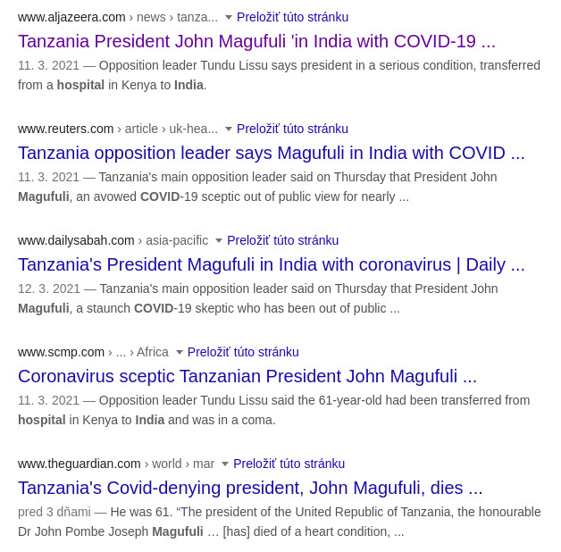 O Magufulim a jeho liečbe západné média šírili konšpirácie, že je v nemocnici v Indii COVID pozitívny, čo bol nezmysel.