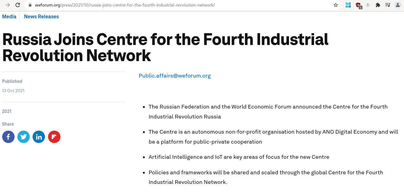 zdroj: https://www.weforum.org/press/2021/10/russia-joins-centre-for-the-fourth-industrial-revolution-network/