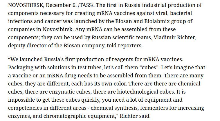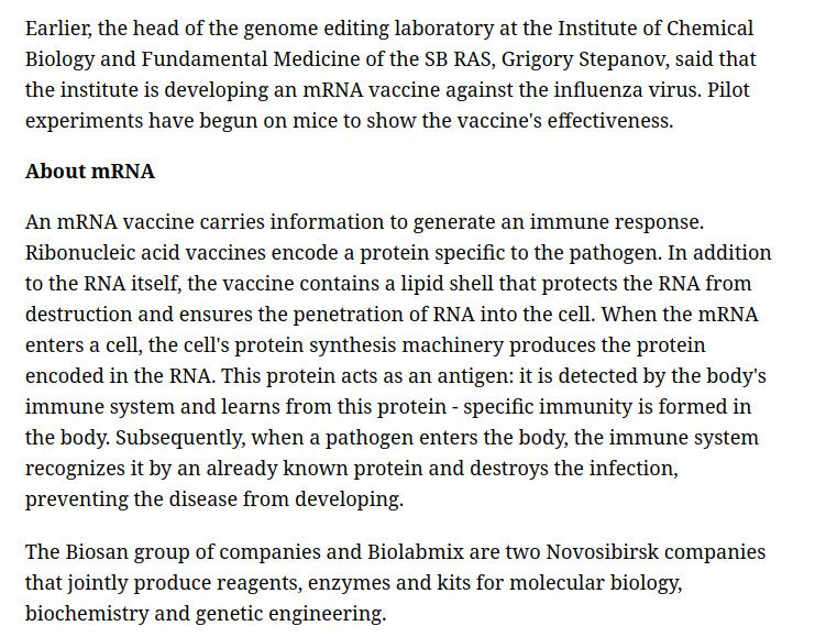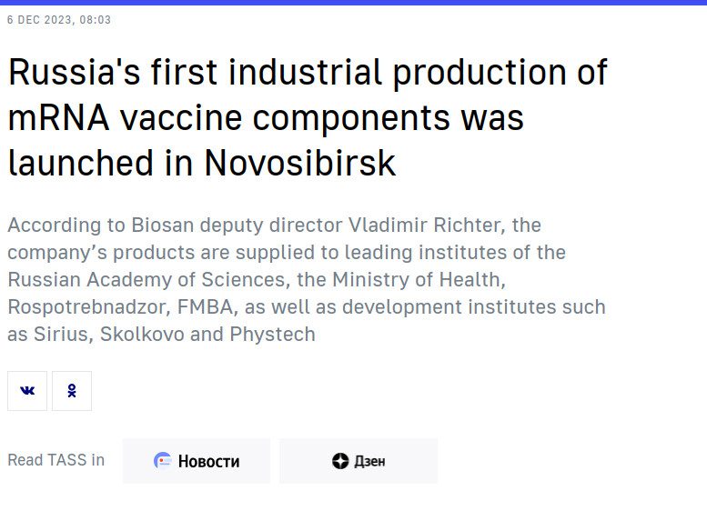 Rusko nezaostáva v očkovaní za západom. Okrem svojej genetickej DNA vakcíny sa sústredí na vývoj vakcín na rôzne ochorenia, napr. chrípku, COVID-19 na podklade mRNA. Na prenos mRNA do bunky ako v prípade Pfizer vakcíny budú služiť nanočastice. Okrem toho vytvára PCR testy na testovanie COVID-19 a iných ochorení.