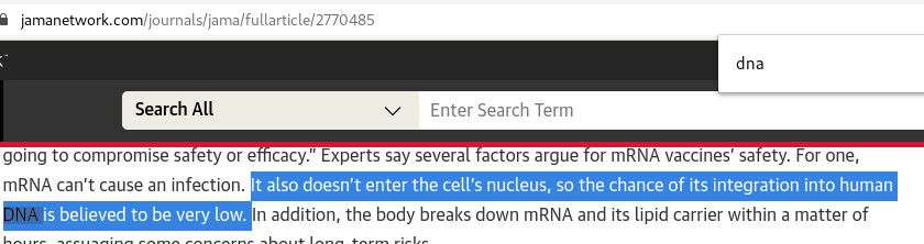 Čo vyplýva z textu: Nie je preverené, že mRNA sa dostane do DNA, kedže sa to neskúmalo vzhľadom na krátky čas. Vedci však VERIA, že šanca, že mRNA sa integruje do DNA je veľmi malá, ALE JE. Ako sa bude správať v DNA, to sa nevie….