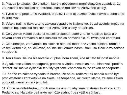 Ľuboš Blaha sa vyjadril, že informácie nie sú pravdivé a oni zabezpečili zmenu pôvodného zákona a údajne nie je možný žiadný zdravotnícky výkon bez súhlasu rodiča.