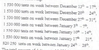 Ako vidieť testy sú pripravené na týždne počnúc 13 decembrom a končiac 28 januárom. Vyzerá to tak, že na december a január tu niekto, niečo plánuje.