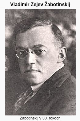 Vladimír Jabotinský vytvoril sionistický revizionizmus, vytvoril tajnú židovskú armádu, v začiatkoch pôsobil v Odese, Ukrajina, kde sa aj narodil. Jabotinský (alebo Žabotinský) neskôr pôsobil ako novinár v Taliansku, vyštudoval právo. Do sporu s ruskými sionistami sa dostal, keď kritizoval prítomnosť Židov na oslavách Gogoľa, ktorého neznášala pre jeho antisemitské vyjadrenia. Po Herzlovej smrti sa stal vodcom pravicového zameraných sionistov. Odišiel do Londýna, kde organizoval jednotky na boj v Palestíne. V roku 1920 sa podieľal na nepokojoch v Palestíne, tajne cvičil jednotky Židov. Bol vo vedeni svetovej sionistickej organizácie, pre nezody ju opustil a založil novú revizionistickú stranu s názvom Aliancia revizionistických sionistov a jej mladežnícke hnutie Betar.