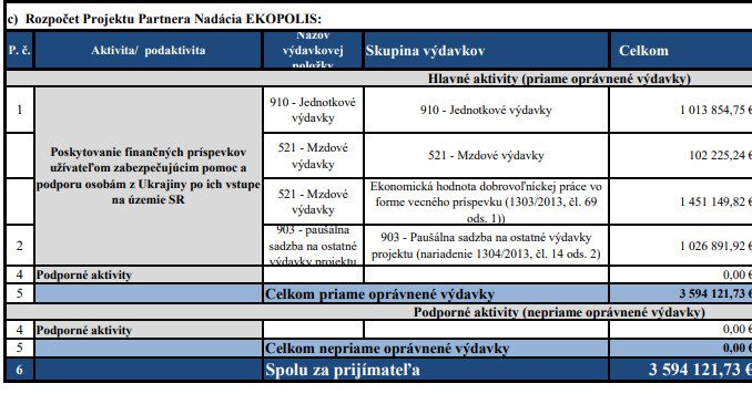 V prílohe príkladám rozpis financii pre nadáciu Ekopolis…vyše 100 000 EUR na platy (nerobia to zadarmo, aj keď sa tvária..že pomáhajú). Bude to úloha pre aktivistov, rozobrať tie mimovládky, kto ich vedie, často ide o prepojené osoby, ktoré takto parazitujú na štátnych rozpočtoch a eurodotáciach. Nedokážete im, či niečo urobili a čo použili ako…
