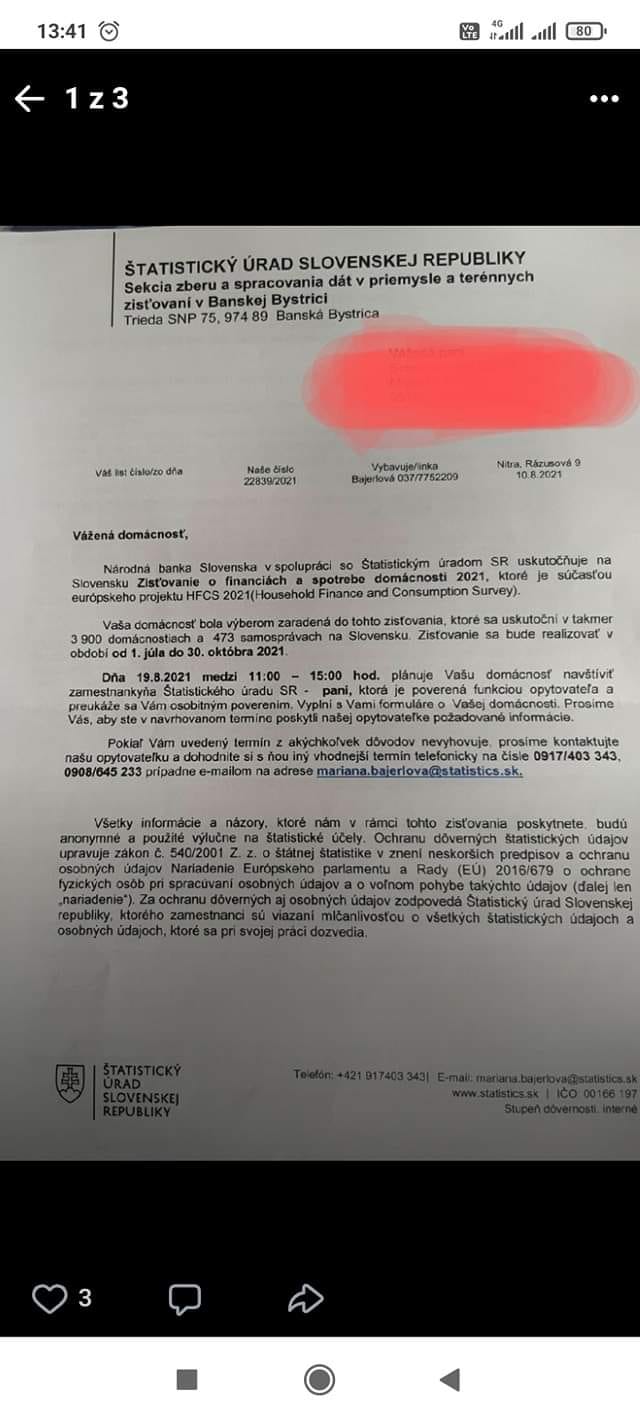 Na internete sa šíri správa, kde má štatistický úrad kontrolovať domácnosti, ich majetok.