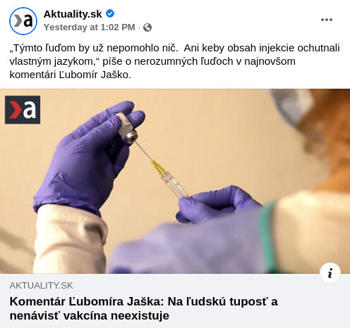 Neočkuješ sa, si tupý. Píše Ľubomír Jaško. Tuposť komentátorov a propagácia experimentálnej vakcíny dosahuje na Slovensku extrémy.